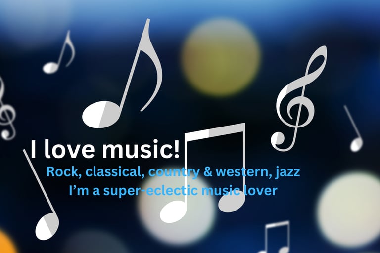 I have long been a lover of music of all (most) kinds. My mom would play records in the house: The Kingston Trio, Tijuana Brass, Burl Ives, and Chubby Checker, among others. (I'm a big fan of the Kingston Trio and the Tijuana Brass, not so much Burl Ives or Chubby Checker.)